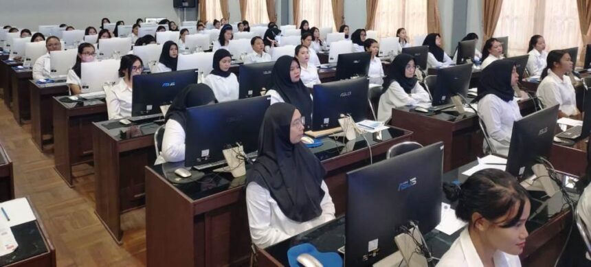 KASONGAN, katakata.co.id – Sekda Katingan Pransang, meninjau pelaksanaan seleksi Calon Pegawai Negeri Sipil (CPNS), di Laboratorium Computer Assisted Test (CAT) Pemkab Katingan, di Kasongan, Minggu (10/4/2024).