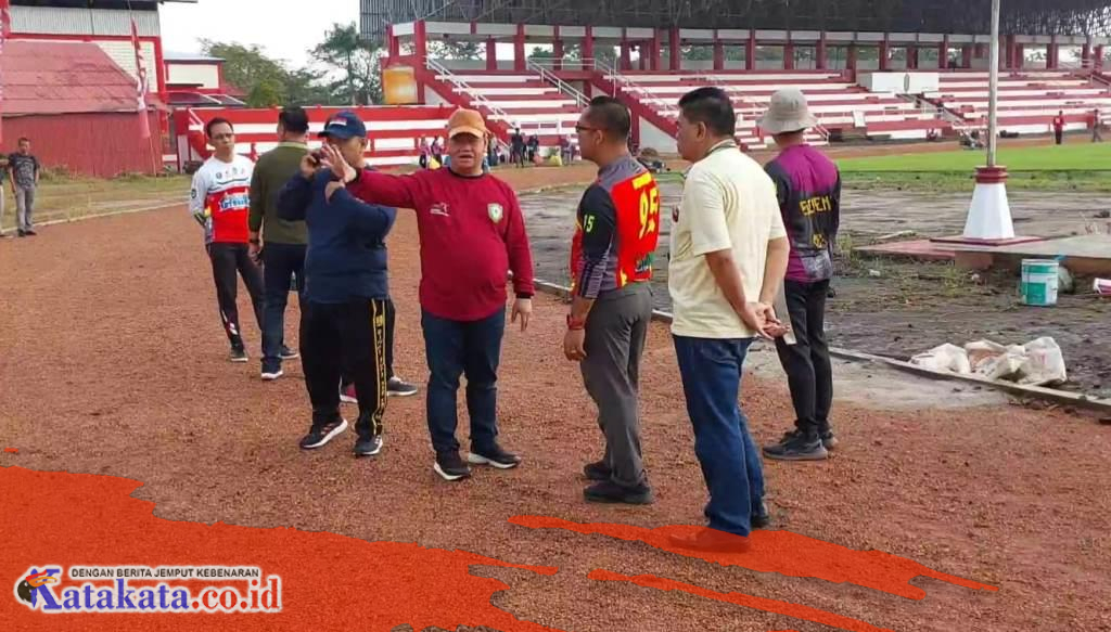 Bupati Kotim, Halikinnor, tampak turut hadir untuk memantau langsung kesiapan pelaksanaan porprov, khususnya persiapan pembukaan porprov yang dilaksanakan di lapangan stadion 29 november pada Rabu (26/7/2023) malam.