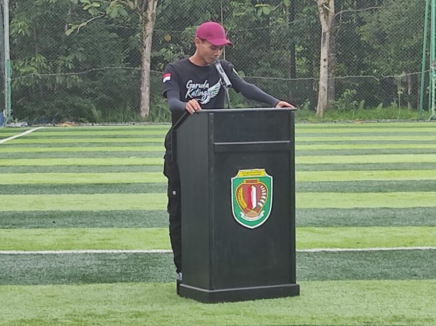 MINI SOCCER : Ketua Umum GARUDA Katingan, Khairul Saleh saat membuka turnamen mini soccer bupati cup I, Minggu (3/8/2025). (foto:ist)