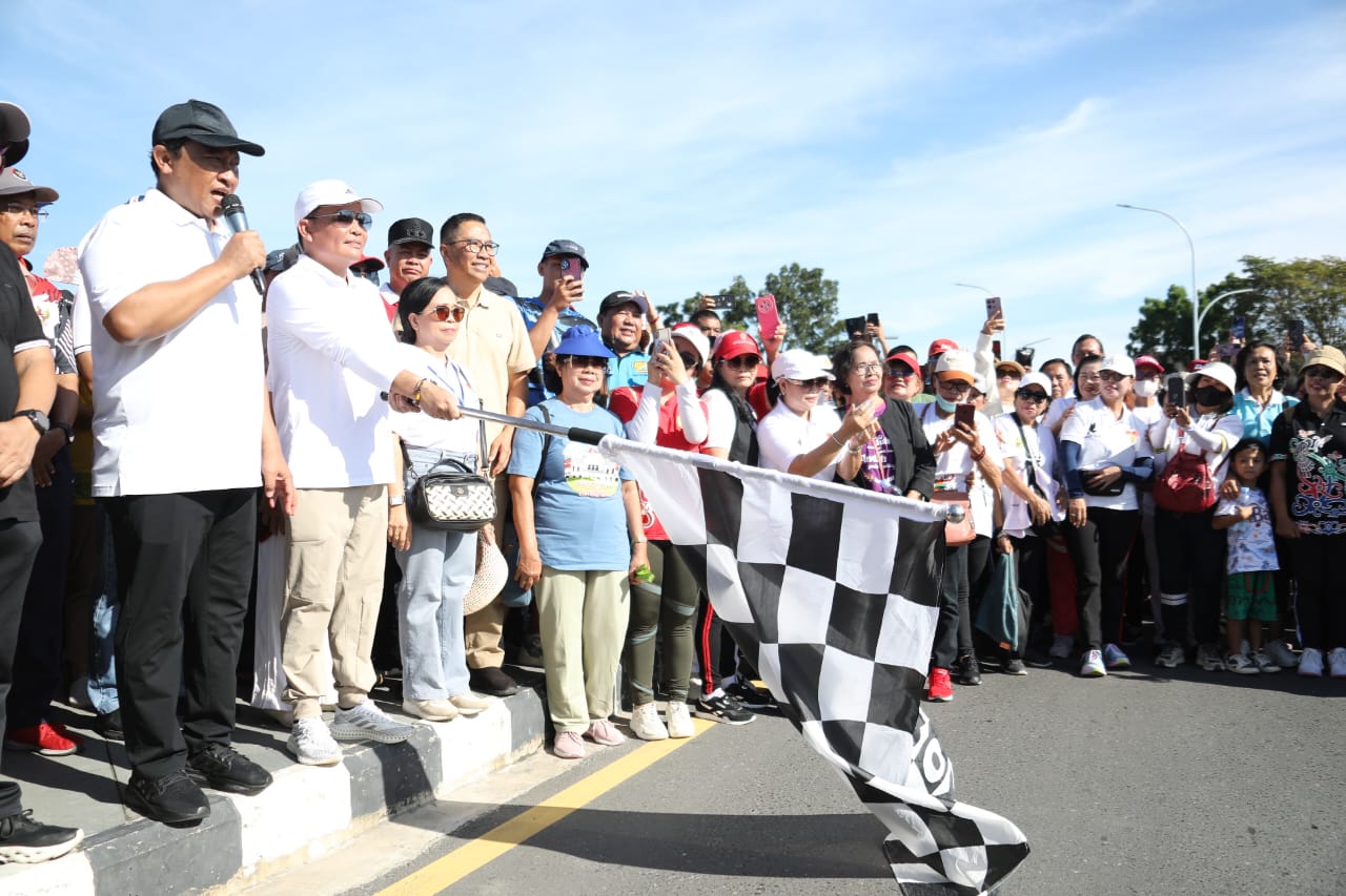 PALANGKA RAYA,katakata.co.id – Gubernur Kalteng H Agustiar Sabran menekankan akan menjunjung tinggi falsafah Huma Betang dalam membangun Kalteng. Hal itu ia sampaikan saat melepas peserta jalan sehat dalam rangka puncak acara HUT Gereja Kalimantan Evangelis (GKE) ke-186, di Bundaran Besar Palangka Raya, Sabtu (12/4/2025).