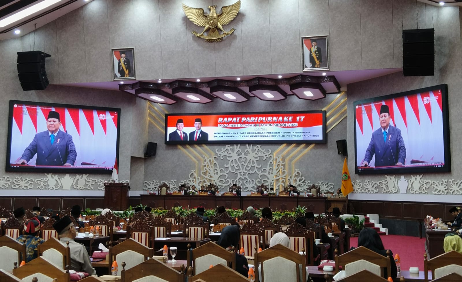 “Mari kita bersama-sama akan mendengarkan pidato kenegaraan Presiden Republik Indonesia yang disiarkan langsung dari Gedung MPR/DPR/DPD RI di Jakarta, dalam rangka peringatan HUT ke-80 Republik Indonesia,” ujarnya.