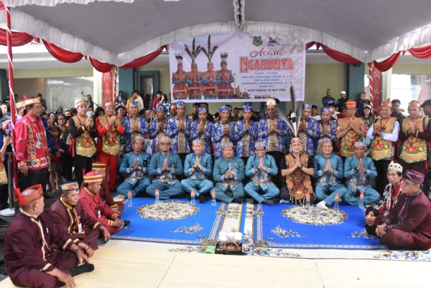 KUALA KAPUAS, katakata.co.id – Salah satu rangkaian acara peringatan Hari Jadi Kota Kuala Kapuas ke 218 dan Ulang Tahun Pemerintah Kabupaten Kapuas ke 73, digelar ritual adat balian ngarunya setelah sebelumnya telah melaksanakan Festival Adat Dayak Laluhan dan pemecahan rekor muri, bertempat di depan rumah jabatan Bupati Kapuas, Senin (29/4/2024).
