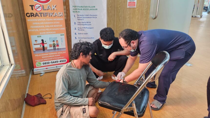 Dokter Devid Fernando mengobati luka di jari, setelah cincin yang menjepit dilepas tim Damkar Pulang Pisau