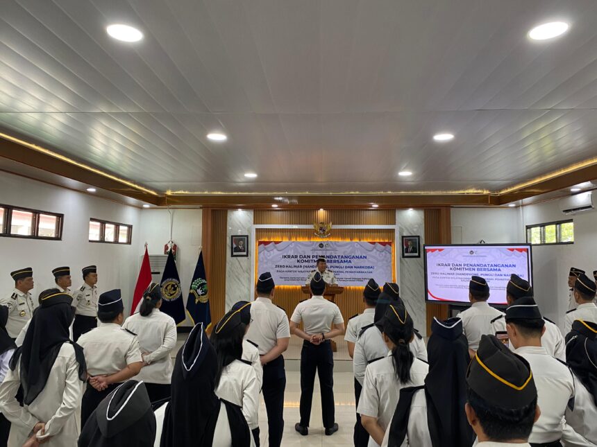 Jajaran pemasyarakatan di Kalimantan Tengah menunjukkan komitmen kuat dalam memberantas praktik terlarang melalui pelaksanaan ikrar dan penandatanganan komitmen bersama Zero Halinar (handphone ilegal, pungli, dan narkoba), Kamis (23/4/2026), di Aula Tjilik Riwut Kantor Wilayah Direktorat Jenderal Pemasyarakatan setempat.