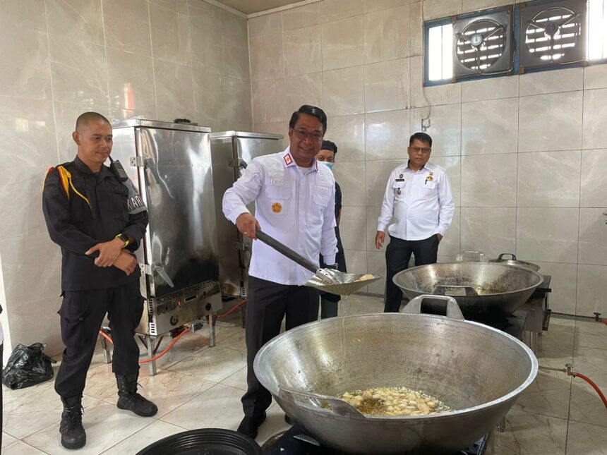 SAMPIT,katakata.co.id – Untuk memastikan pemberian makanan yang memenuhi standar gizi bagi Warga Binaan, Kepala Lapas Kelas IIB Sampit, Kanwil Kemenkumham Kalteng, Meldy Putera, melaksanakan kegiatan pengamatan dan pengawasan di Dapur Sehat Lapas Sampit. Kegiatan ini merupakan bagian dari upaya Lapas Sampit untuk menjamin kualitas makanan yang disajikan kepada Warga Binaan sesuai dengan kebutuhan gizi yang telah ditentukan, Rabu (06/11/2024)