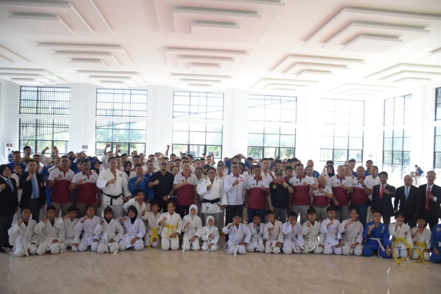 Pj Bupati Kapuas, Erlin Hardi saat foto bersama tamu undangan dan para peserta Kejuaraan Judo Se-Kaltensel Piala Pj Bupati, di Hall Rujab Bupati, Sabtu (2/3/2024). (foto: ist)