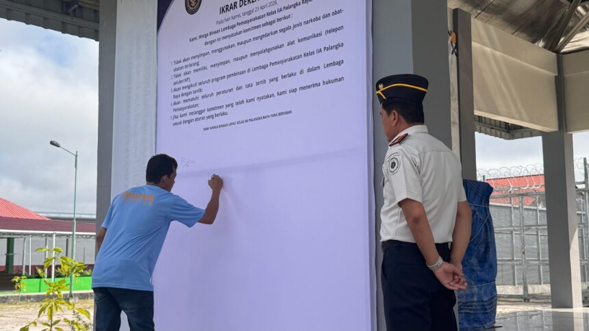 PALANGKA RAYA,katakata.co.id– Lembaga Pemasyarakatan (Lapas) Kelas IIA Palangka Raya kembali menegaskan komitmennya dalam memberantas praktik handphone ilegal, pungutan liar, dan narkoba (Halinar) melalui apel deklarasi dan penandatanganan komitmen bersama, Kamis (23/4/2026).