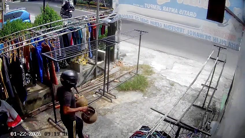 Kejadian tersebut terekam jelas kamera pengawas yang terpasang di lokasi usaha. Berdasarkan rekaman, pelaku merupakan seorang pria yang mengenakan pakaian serba hitam dan helm berwarna hitam.