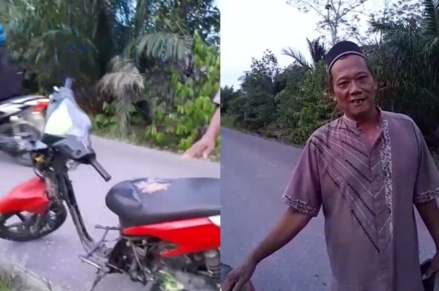 “Saat lewat di jalan tersebut dimintai tolong sama orang karena motornya rusak tidak bisa hidup untuk didorong justru malah menjadi musibah bagi saya,” Kata Sudiro.
