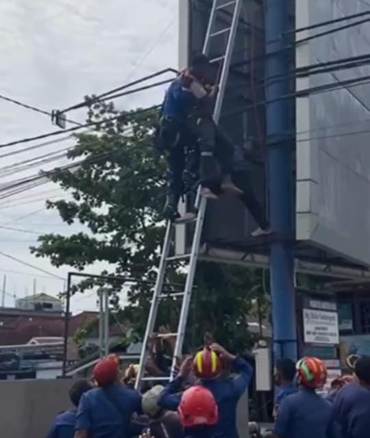 Proses evakuasi berlangsung dengan penuh kehati-hatian mengingat posisi korban berada di ketinggian dan dalam kondisi lemas. Setelah berhasil dievakuasi, korban yang mengalami luka bakar serius di beberapa bagian tubuh langsung dilarikan ke rumah sakit untuk mendapatkan perawatan medis intensif.