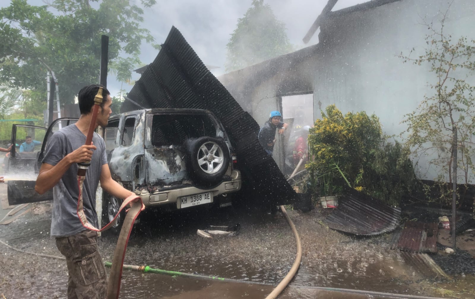 Kebakaran diduga bermula dari mobil Suzuki Escudo Silver Nopol KH 1388 AE yang terparkir di garasi rumah, sebelum api menjalar dan membakar seluruh bangunan.
