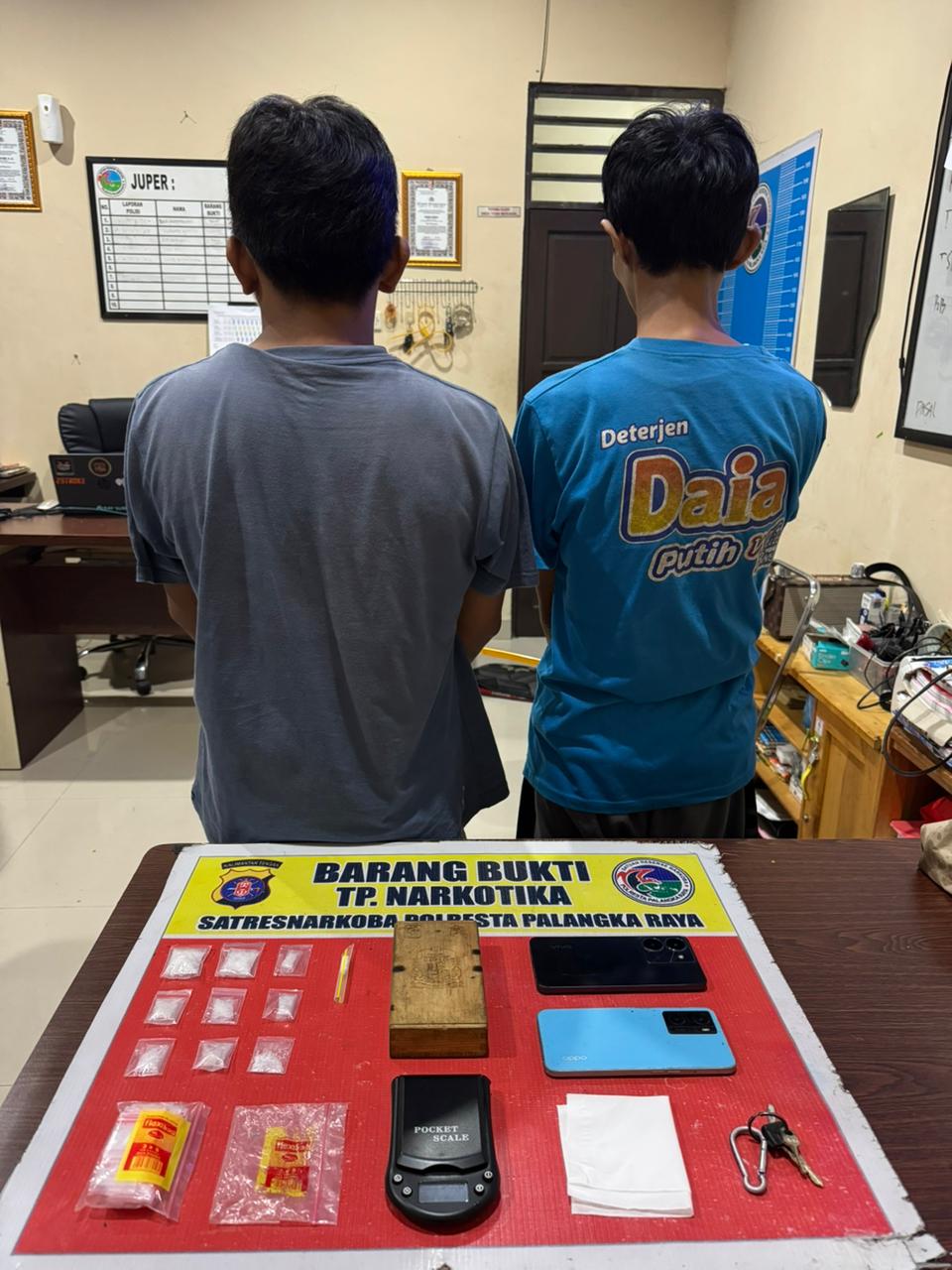 Selasa (10/2/2026) Siang, Kapolresta Palangka Raya Kombes Pol. Dedy Supriadi melalui Kasat Narkoba AKP Yonika Winner Te’dang mengatakan bahwa Saat dilakukan pemeriksaan badan yang disaksikan oleh ketua RT setempat petugas menemukan tiga paket sabu yang diselipkan di pinggang salah satu pelaku.