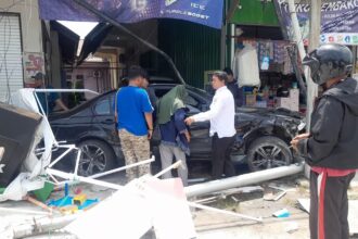 Kurang Konsentrasi dan Main Ponsel, Mobil BMW Tabrak Ruko dan Penjual Es Teh