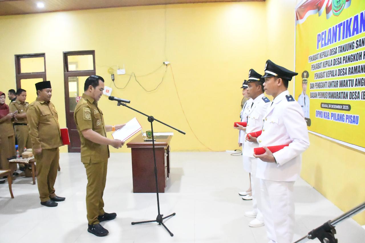 Adapun Penjabat Kepala Desa yang dilantik berasal dari tiga desa, yaitu Desa Tanjung Sengalang Kecamatan Kahayan Tengah dengan Penjabat Kepala Desa Herdianson, Desa Ramang Kecamatan Banama Tingang dengan Penjabat Kepala Desa Krismiaty, Amd.Keb, serta Desa Pangkoh Hulu Kecamatan Pandih Batu dengan Penjabat Kepala Desa Yap Androni, S.Sos., M.M.