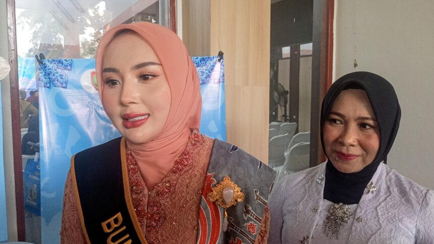 Ketua TP PKK Kalteng, Aisyah Thisia Agustiar Sabran, didampingi Nunu Andriani, saat diwawancarai awak media usai kegiatan, Senin (27/4/2026).