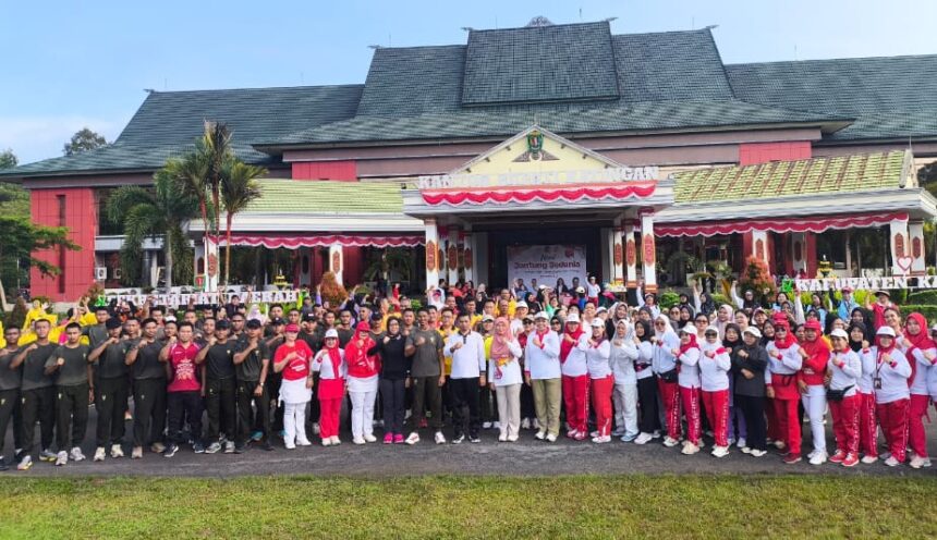 KASONGAN,katakata.co.id – Wakil Bupati Katingan, Firdaus, didampingi Ketua Gabungan Organisasi Wanita (GOW) Kabupaten Katingan, Ny. Tri Windarti, menghadiri peringatan Hari Jantung Sedunia Tahun 2025 yang dirangkai dengan kegiatan senam bersama dan pemeriksaan kesehatan gratis. Acara berlangsung meriah di halaman Kantor Bupati Katingan pada Jumat (26/9/2025).