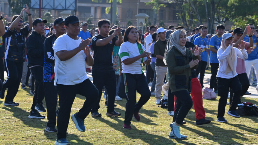 PALANGKA RAYA,katakata.co.id- Dalam rangka peningkatan kesehatan dan kebugaran jasmani serta untuk menjalin keakraban dan tali silaturahmi antar Aparatur Sipil Negara (ASN) dan Pegawai Kontrak di lingkungan Pemerintah Provinsi (Pemprov) Kalimantan Tengah (Kalteng), dilaksanakan kegiatan Senam Pagi Bersama di Halaman Kantor Gubernur, Jumat (13/6/2025) pagi.